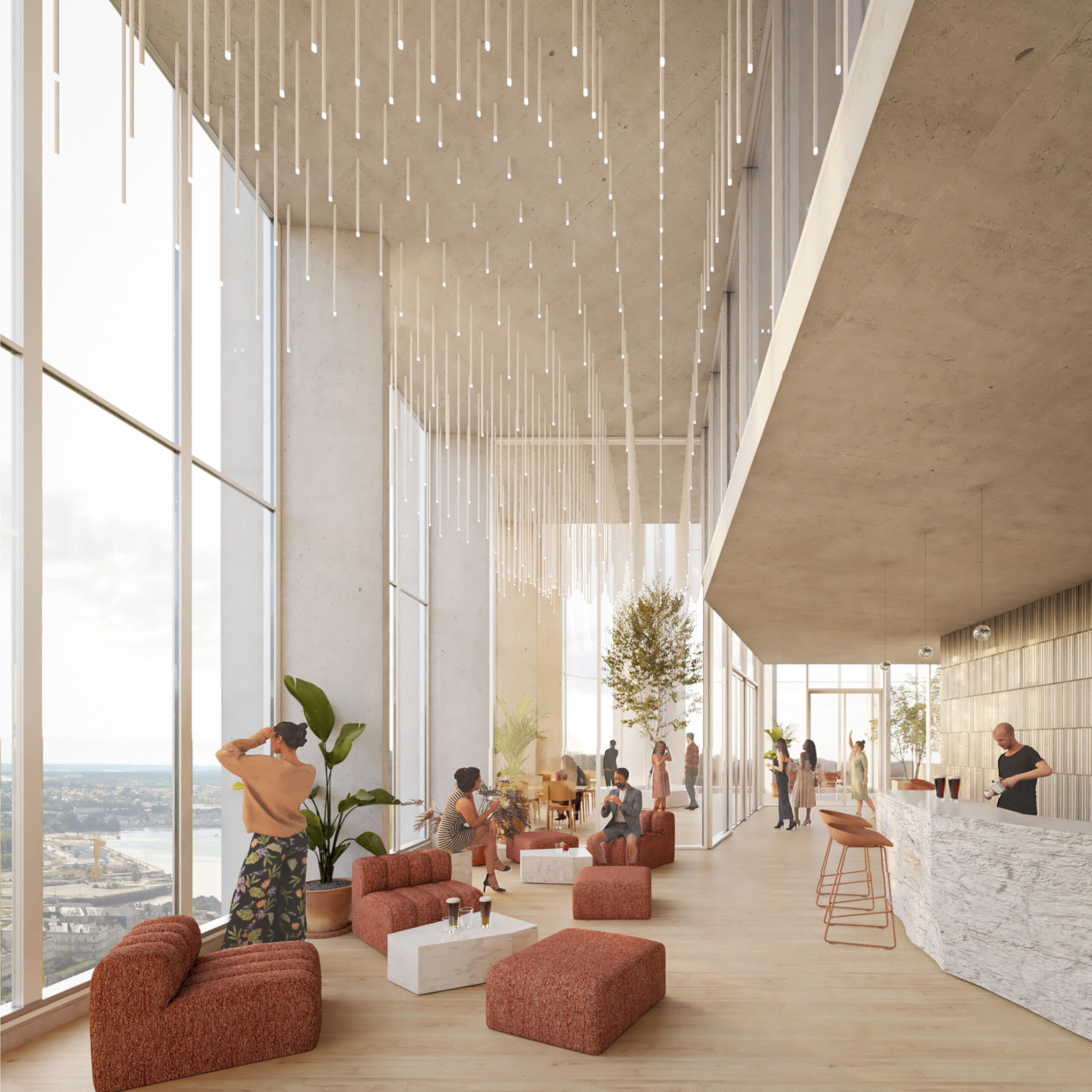 Transformation d'une tour de bureaux en habitations, commerces, hôtel 4* et bar-restaurant en rooftop